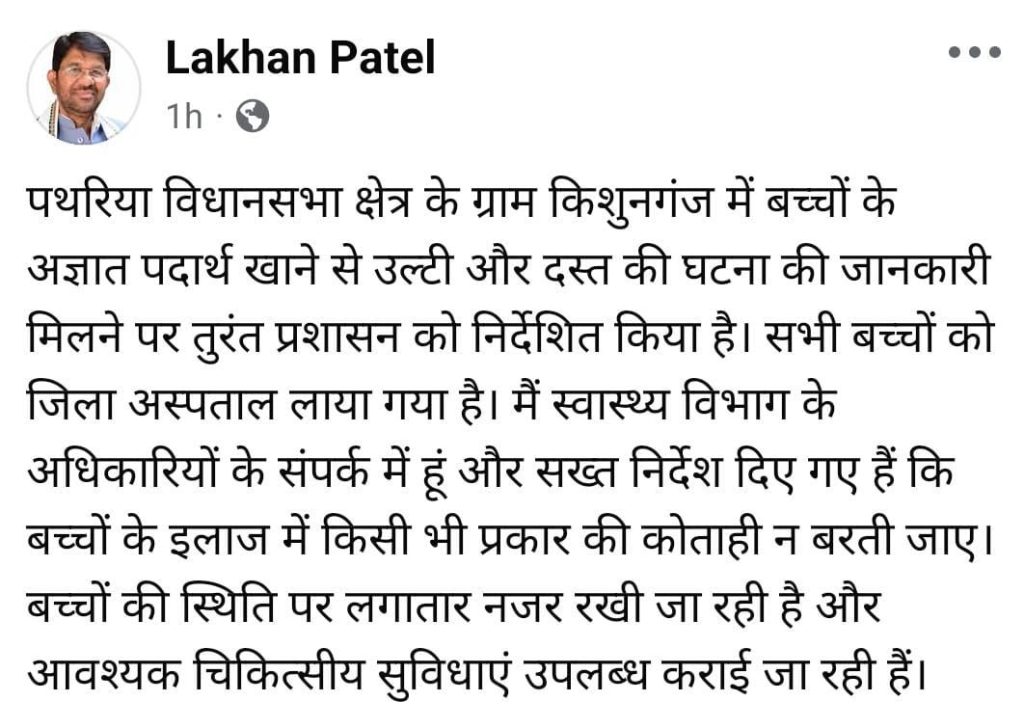 मामले की जानकारी मिलते ही क्षेत्रीय मंत्री लखन पटेल भी सक्रिय हो गए। उन्होंने स्वास्थ्य विभाग और प्रशासन से लगातार संपर्क में रहकर स्थिति की जानकारी ली। मंत्री ने स्पष्ट निर्देश दिए कि बच्चों के इलाज में किसी भी प्रकार की लापरवाही न की जाए। सभी आवश्यक मेडिकल सुविधाएं उपलब्ध कराई जाएं और स्थिति पर निरंतर निगरानी रखी जाए।