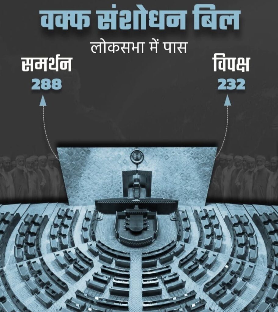 नई दिल्ली : लोकसभा ने वक्फ (संशोधन) विधेयक 2025 लंबी और गरमा गरम चर्चा के बाद पारित हो गया। इस विधेयक के पक्ष में 288 और विपक्ष में 232 वोट पड़े।