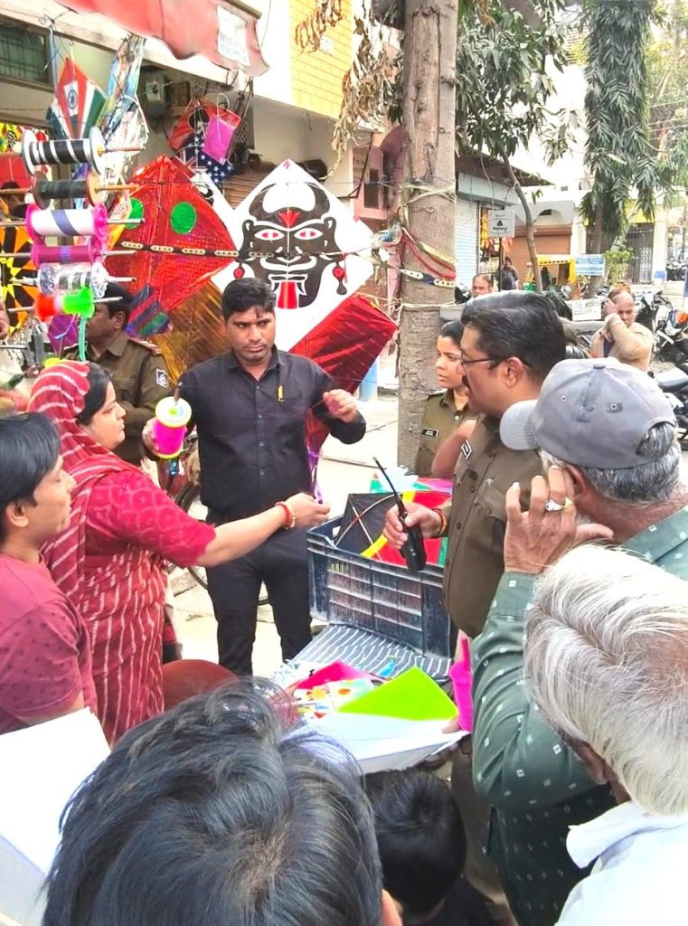 चाइनीज मांझे से हो रही लगातार दुर्घटनाओं और जानलेवा घटनाओं को गंभीरता से लेते हुए मल्हारगंज थाना पुलिस ने अपने क्षेत्र में सख्त कार्रवाई शुरू की है। मकर संक्रांति के मद्देनजर पुलिस ने पतंग और मांझा बेचने वाली दुकानों पर पहुंचकर सघन तलाशी अभियान चलाया और दुकानदारों को स्पष्ट चेतावनी दी कि चाइनीज मांझा बेचने या रखने पर कड़ी कानूनी कार्रवाई की जाएगी। अभियान के दौरान पुलिस ने दुकानों पर मौजूद ग्राहकों, युवाओं और बच्चों से सीधा संवाद कर चाइनीज मांझे के खतरों के बारे में विस्तार से बताया। पुलिसकर्मियों ने समझाया कि यह सिर्फ खेल का साधन नहीं,बल्कि एक खतरनाक धागा है, जो इंसानी जीवन के लिए गंभीर खतरा बन चुका है।